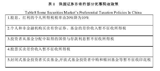 證券市場作為金融市場最前沿的戰場,直接反映了一個城市或地區金融發達程度。證券市場的發展對上海國際金融中心的建設有著十分重要的意義,多層次的證券市場的開發與完善是上海成為國際金融中心必須邁過的一道坎。 證券市場的蓬勃發展離不開多層次證券市場體系的建設。要建設多層次資本市場體系,就要增加直接融資的規模與比重;深化發展股票市場;加速發展債券市場,尤其是企業債市場;努力營造與國際接軌的期貨市場。與其他商品市場不同,除了金融機構自身的拼搏,  證券市場的發展需要政府更多的參與。體制上的約束很久以來一直是制約上海證券市場發展的最大因素。隨著金融體制改革的開展, 體制與金融環境己經得到很大改善。證券市場法律體系的建立與完善,證券市場基礎設施建設的成效顯著,股權分置改革也基本完成。在經歷了這些制度性改革后,我國的證券市場既有過欣欣向榮的高峰時刻,也有一落千丈的涅磐重生,此間的變化不可謂不大,影響不可謂不深遠。但是,相形之下,證券市場的稅制建設反而成了多年來一直不見起色的領域。時至今日,證券市場依然缺少一套完整有效的稅收體系。因此,政府對于證券市場的調控,發展與風險防范始終顯得有心無力。 由于有價證券作為虛擬經濟的波動性,不確定性與易受心理預期影響等特質,稅收政策對證券市場有著很大的影響力。我國證券市場規模小,  投機氛圍重, 且投資者專業素質不高,所以稅收政策的任何變動都可能給市場帶來很大的沖擊。因此,證券市場稅制改革投鼠忌器,舉步維艱。但是,要想讓上海成為國際金融中心,證券市場稅制改革就是不可回避的問題。本章將對我國證券市場稅制進行探索,以求能為建立符合我國國情的證券市場稅制體系提出建設性意見。下面先簡單敘述一下證券市場的稅制體系。 證券市場的稅收主要分為對證券交易環節征稅和對證券交易所得征稅。對證券交易環節征稅一般采用證券交易稅與印花稅的形式。證券交易稅一律按稅率全額課征。證券交易所得稅只有在取得盈利時才征收,  且稅率要普遍高于證券交易稅。差別性的證券交易稅政策,可以區別對待不同交易行為, 從而起到調節證券市場結構的作用。