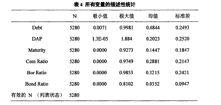 (2)大量的學者已經證明了在股票市場中存在著盈余管理的資本市場動機,企業為了IPO和股權再融資,有粉飾盈利的行為。這種動機在債務市場中是否存在?為了取得資金,企業在貸款和發行債券的過程中是否也會進行盈余管理?以往的學者關于這方面的研宄很少。本文通過描述性統計和實證分析,證明了債務市場中同樣存在著盈余管理的資本市場動機。