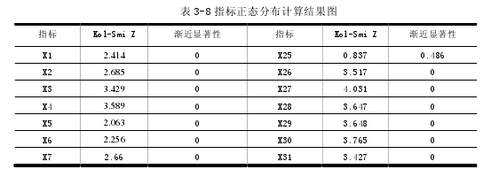 雖然在理論上,上述指標對于 ST 企業能否改善經營狀況,成功“脫帽”有著重大影響,但是在實證研究中,由于各類偏差,并不是每個指標都會如預期般產生明顯相關性,就需要先采用 T 檢驗來進行顯著性相關的測試。而我們必須重視的是,T 檢驗的前提是兩大數據樣本的整合總體必須服從正態分布,下面就需要先利用 K-S 檢驗去檢驗數據是否服從正態分布。K-S 檢驗,主要是用于檢測數據是否服從某一特定形態的分布。而在 SPSS 軟件中,K-S 檢驗提供了珀松分布、均勻分布和正態分布三種,本文選取的便是正態分布,其計算數據結果如下: