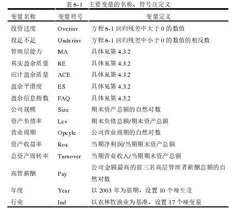 第 6 章  管理層能力、盈余質量與資本配置效率的實證檢驗